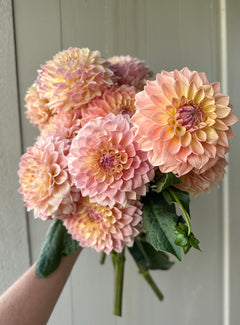 ‘Ferncliff Inspiration’ was a beautiful surprise on our farm. Blooms start out a warm lavender and age to an icy white with an incredible vase life. This dahlia quickly became a staple in our bouquet and event work. Pairs well with ‘Café au Lait’, ‘Coralie/Castle Drive’, and ‘Bracken Rose’.